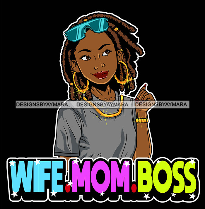 Afro Lola Queen Hustle Wife Mom Boss Bamboo Jewelry Life Quotes Dreadlocks Hair Style SVG Cutting Files For Silhouette Cricut