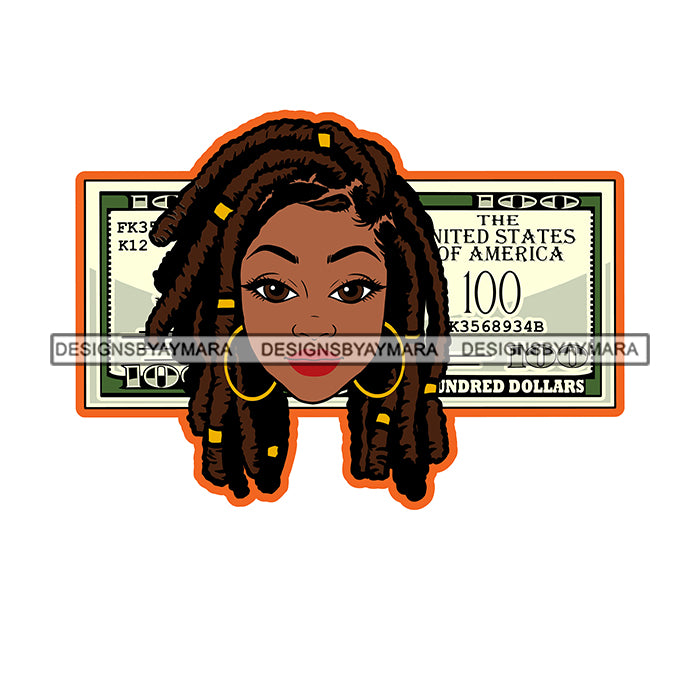 Afro Sexy Woman Money Maker One Hundred Dollar Background Dreadlocks Hairstyle SVG JPG PNG Cutting Files For Silhouette Cricut