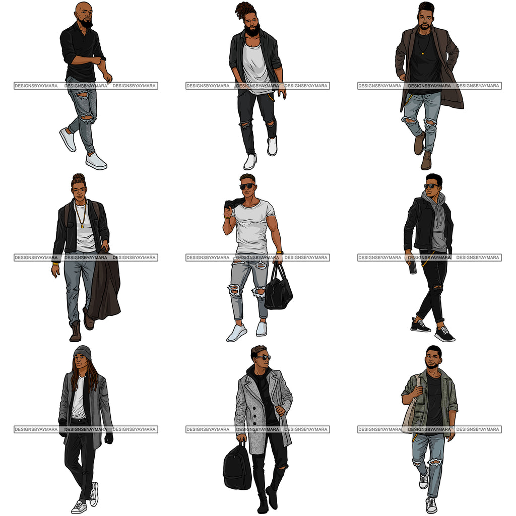 Bundle 9 Afro Handsome Man Bearded Men Fashion Dreadlocks Hair Glasses PNG JPG SVG Cutting Files For Silhouette Cricut and More!