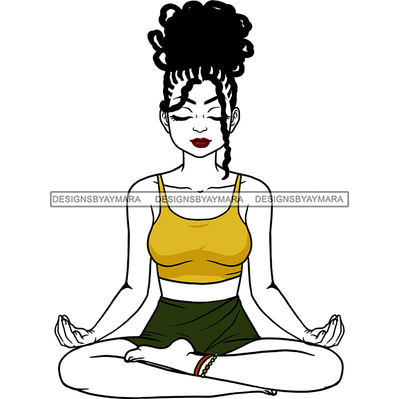 Black Woman Dreadlocs Locs Yoga Relax Legs Crossed Eyes Closed Hands Open Exercise Transparent Clipart Graphic Skillz JPG PNG Clipart Cricut Silhouette Cut Cutting