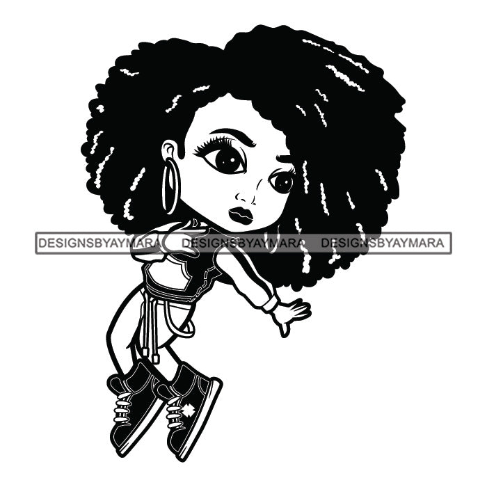 Cute Afro Girl Dancing Hip Hop Dancer Joggers Jacket Dreadlocks Hairstyle B/W SVG JPG PNG Vector Clipart Cricut Silhouette Cut Cutting