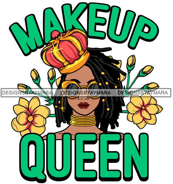 Makeup Queen Woman Golden Gold Earrings Googles Necklace Lipstick Dreadlocks Locs Dreads Hairs Hair Yellow Flowers Classy Mature Girl Magic Melanin Nubian African American Lady SVG JPG PNG Vector Clipart Cricut Silhouette Cut Cutting