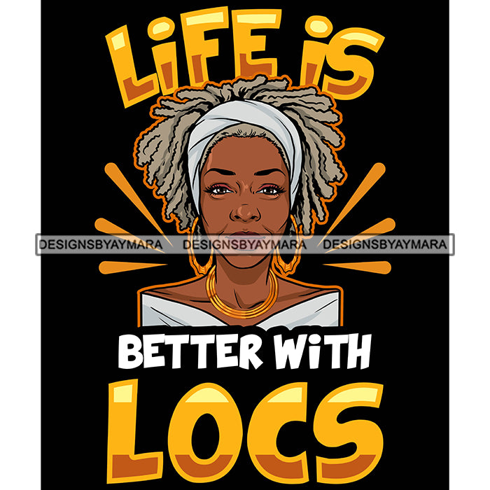 Pretty Afro Woman Gray Hair Headband Love Locs Hairstyle Black Background SVG JPG PNG Vector Clipart Cricut Silhouette Cut Cutting