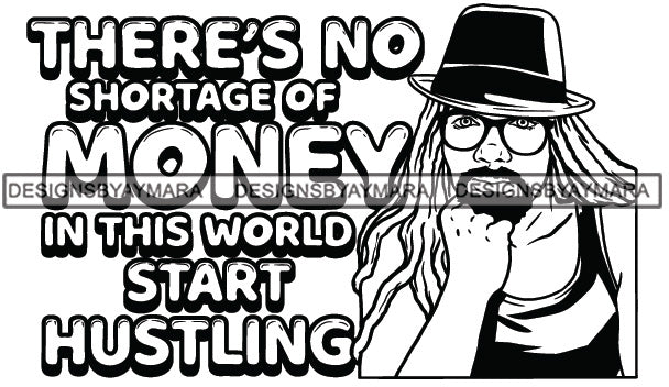 Sexy Black Man Hustle Quote Glasses Hat Dreadlocks Sleeveless T-Shirt Fashion Style B/W SVG JPG PNG Vector Clipart Cricut Silhouette Cut Cutting