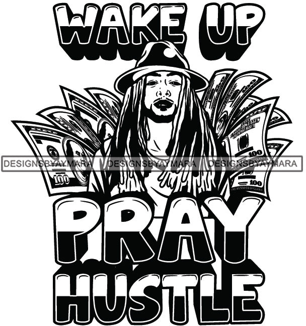 Sexy Black Man Hustle Quote Confident Hat Style Long Dreadlocks Hairstyle B/W SVG JPG PNG Vector Clipart Cricut Silhouette Cut Cutting