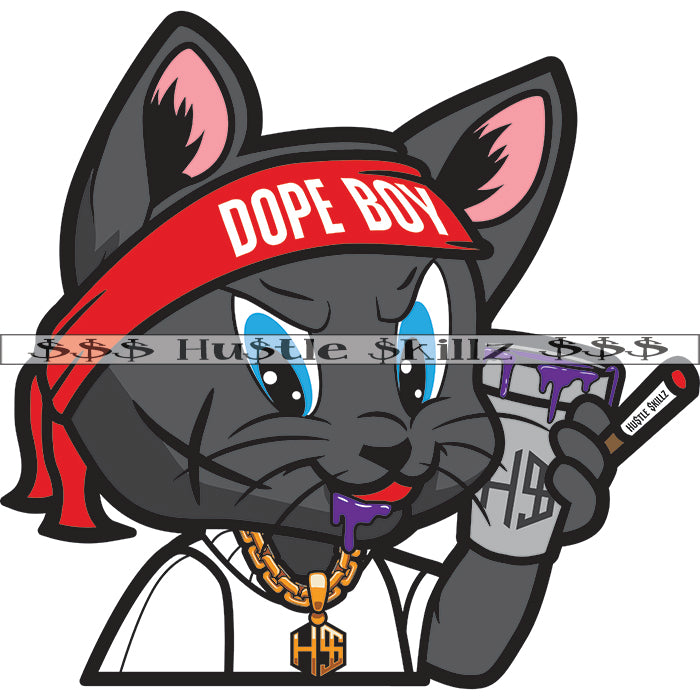 Gangster Scarface Cat Smoking Hand Holding Weed And Glass Vector Design Element White Background Smile Face Wearing Head Band SVG JPG PNG Vector Clipart Cricut Cutting Files