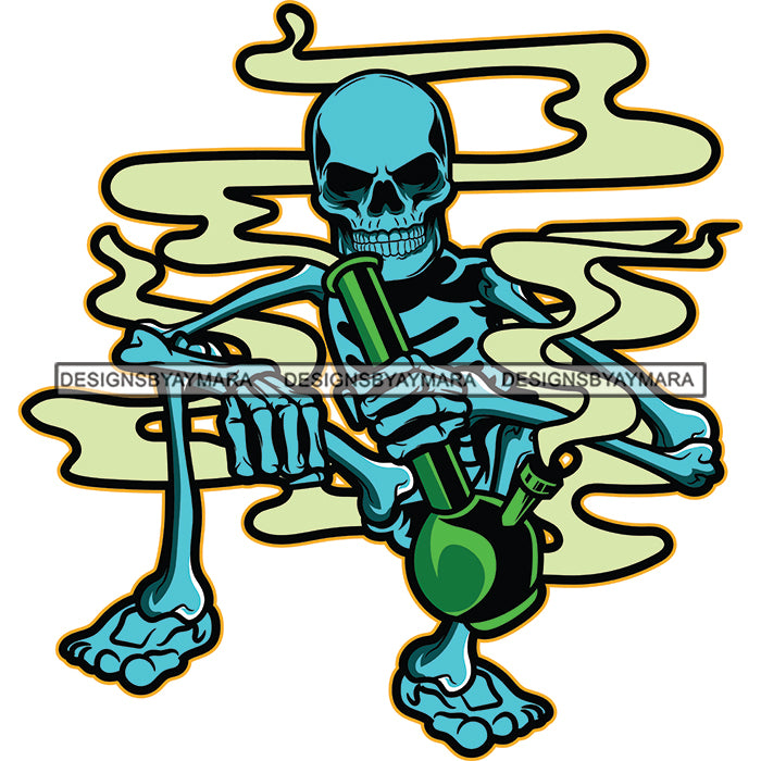 Human Horror Blue Skeleton Sitting Smoking Bong Marijuana Cannabis Smoke Scary Bone Skull Head Bone Evil SVG JPG PNG Vector Clipart Cricut Silhouette Cut Cutting