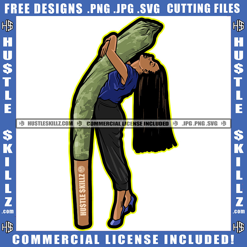 Long Hair African American Women Hugging Weed Roll Vector Portrait Melanin Women Marijuana Cannabis High Life Blunt Smoking Silhouette SVG JPG PNG Vector Clipart Cricut Cutting Files