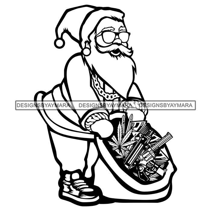 Gangster Santa Holding Bag With Marijuana Guns Money Gansta Santa Merry Christmas Happy Holyday Santa Outfit Santa Hat SVG PNG JPG Cut Files For Silhouette Cricut and More!