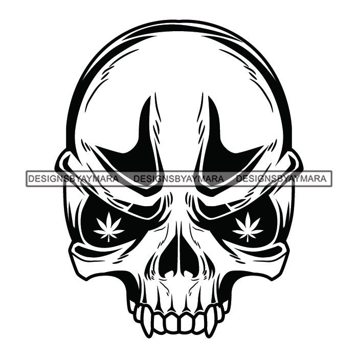 Skull Marijuana Leaves Eyes Cannabis Recreational Medicinal Drug B/W SVG JPG PNG Vector Clipart Cricut Silhouette Cut Cutting