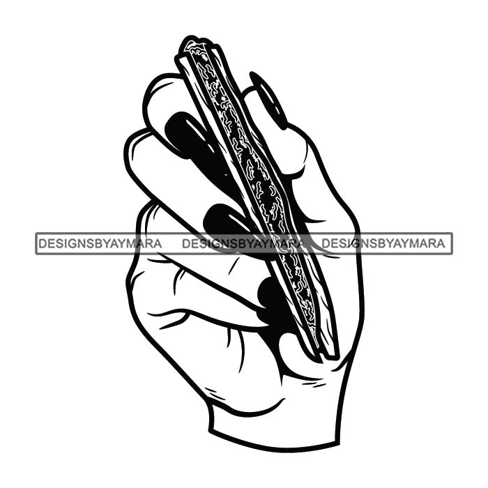 Woman Hand Holding Marijuana Joint Blunt Weed Cannabis 420 Medical Marijuana Pot High Life B/W SVG JPG PNG Vector Clipart Digital Download Cricut Cut Cutting