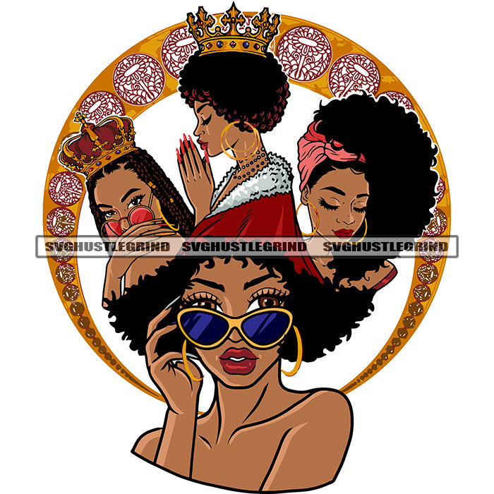 African American Woman Wearing Sunglass And Crown On Head Design Element Afro Woman Hard Praying Hand Logo SVG JPG PNG Vector Clipart Cricut Silhouette Cut Cutting