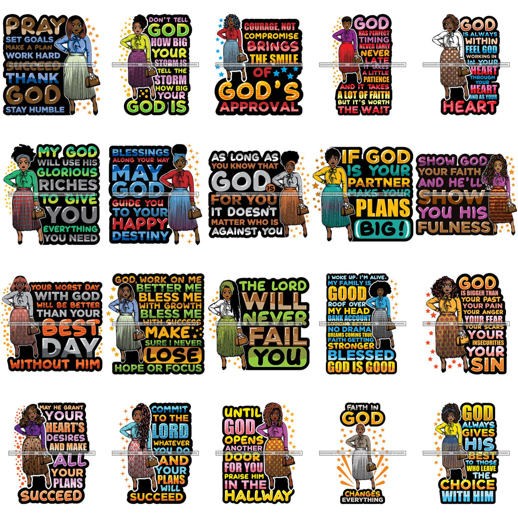 Bundle 20 Afro Classy Lola Elegance Glamour Church Lady God Lord Dios Quotes .SVG Clipart Vector Cutting Files For Circuit Silhouette Cricut and More!