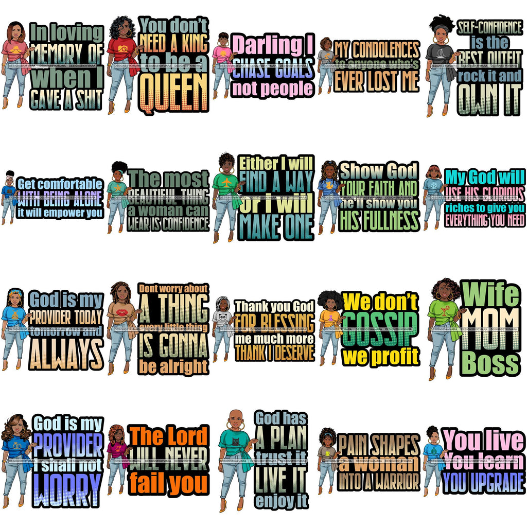 Bundle 20 Afro Lola Boss Confident Classy Lady Life Quotes SVG Cutting Files For Silhouette Cricut and More