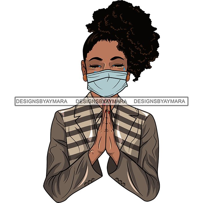 Afro Lola Praying Sad Crying Pain Face Mask Begging Prayers Virus SVG Vector Clipart Cutting Files