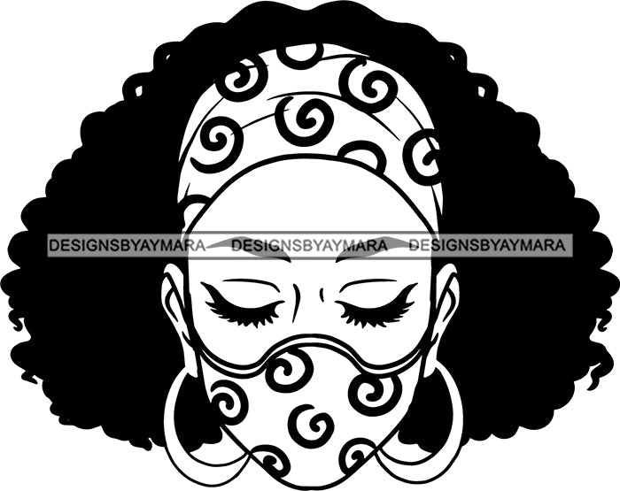 Afro Woman Messy Hair Wearing Face Mask Headband Black Girl Magic Melanin Popping Hipster Girls SVG JPG PNG Layered Cutting Files For Silhouette Cricut and More