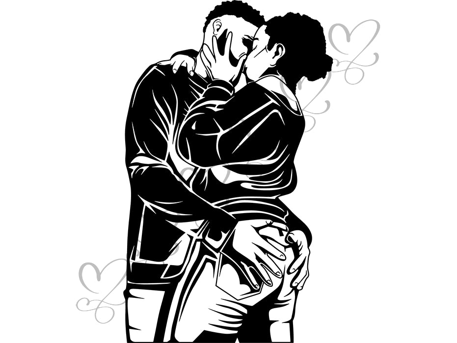 Black Couple SVG Relationship African Ethnicity Kissing Falling in Love Happiness Young Adult EPS .PNG Vector Clipart Cricut Circuit Cut Cutting