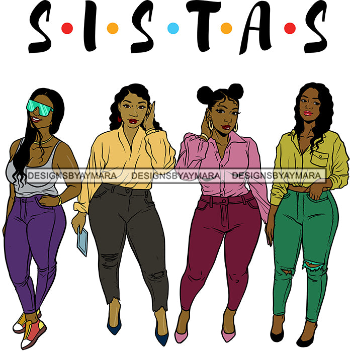 4 Sassy Petite Sista's Sisters Stepping Out SVG JPG PNG Vector Clipart Cricut Silhouette Cut Cutting