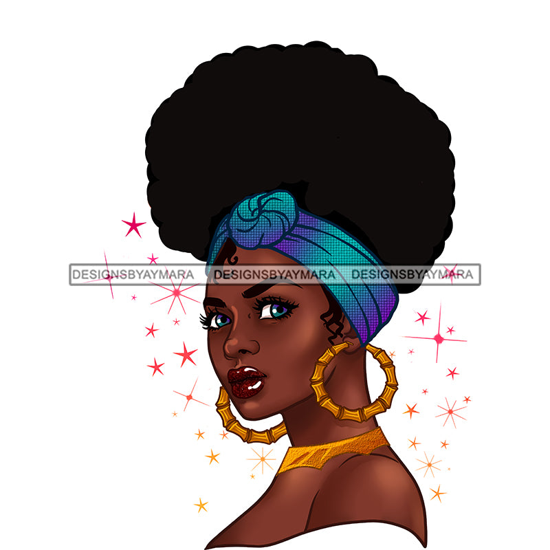 Beautiful Black Woman Blue Headwrap Big Afro JPG PNG Clipart Cricut Silhouette Cut Cutting