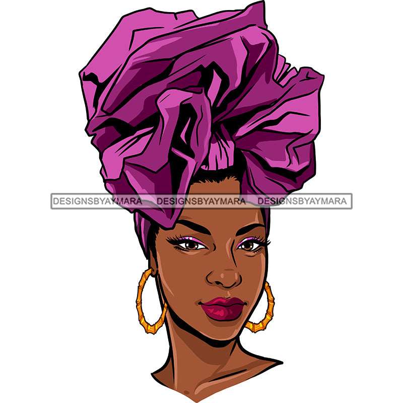 Black Queen With Beautiful Purple Headwrap JPG PNG Clipart Cricut Silhouette Cut Cutting