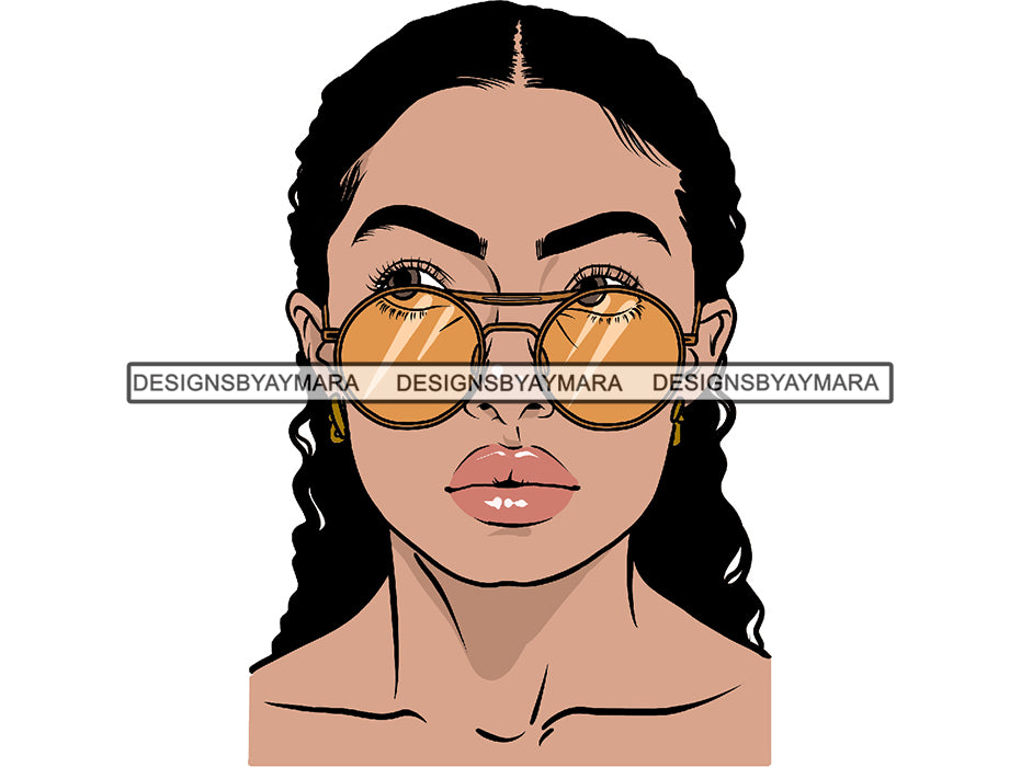 Glasses Braid Curly Hairstyle Sunglasses Face Lip Woman Black African American Beautiful Gorgeous .SVG .JPG .EPS .PNG Vector Clipart Cricut Cutting Cut