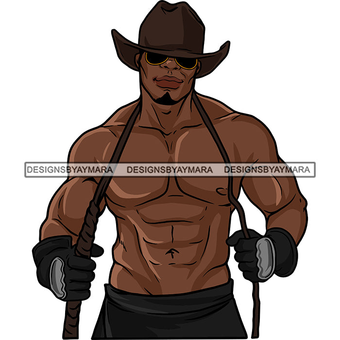 Sexy Black Man Fashion Model Shirtless Whip Sunglasses Cowboy Hat Style SVG JPG PNG Vector Clipart Cricut Silhouette Cut Cutting